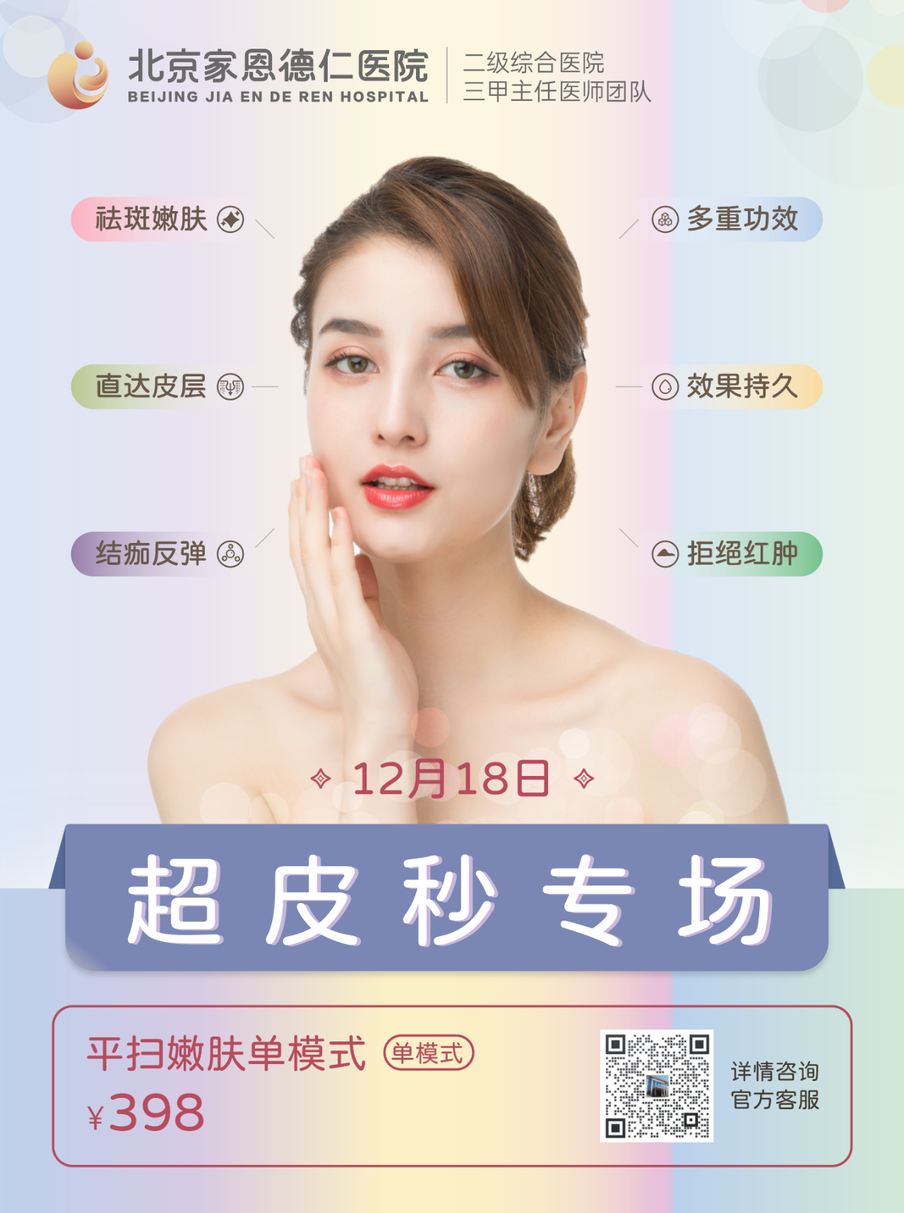 小仙女们除了这次的12.12妇产福利活动,家恩德仁还给大家准备了12月18日的超皮秒美肤专场!即刻预约,了解更多医院福利》》》》》