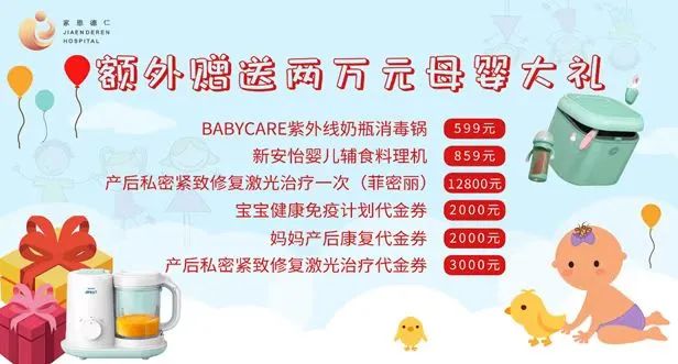 推荐有礼:老客户推荐新客户购买产科套餐,可获赠价值2000元的超值礼包+医美热销项目任选1项(水光+润致动能素/热拉提面颈/祛红+水婴肌/光子嫩肤+水婴肌)。