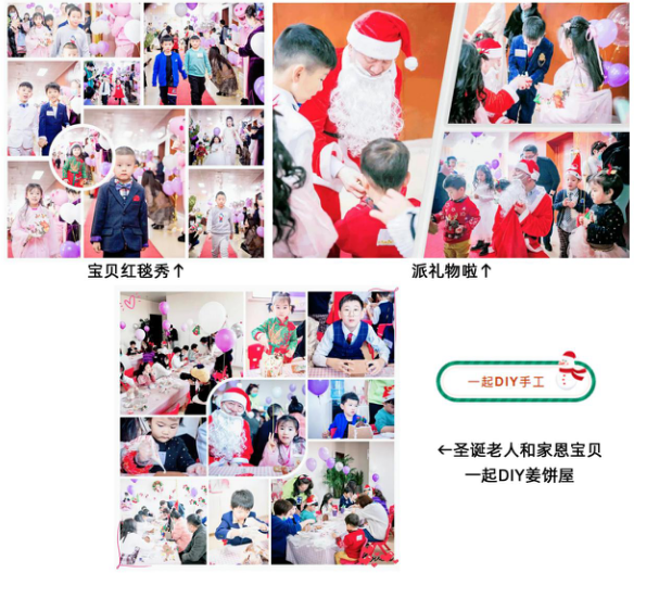 圣诞时节,家恩德仁的宝贝们汇聚一堂,刘家恩和工作人员满心欢喜为宝贝们准备了红毯秀、甜蜜的糖果、圣诞礼物、丰盛的圣诞自助餐,带着家恩宝贝们一起手工DIY圣诞姜饼屋。