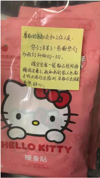 小区核酸检测采样在户外有序进行,小区居民自觉排好队,没有人抱怨,有的只是对医护人员辛勤工作的感激。还有热心的小朋友拉着爸妈,特意拿来了两大袋可爱的暖宝宝,专门送到采集人员的手中,医护又婉谢转递给值班的保安,保安说什么也要回赠哪怕一个。这暖暖的情意,温暖了每一个人的内心。