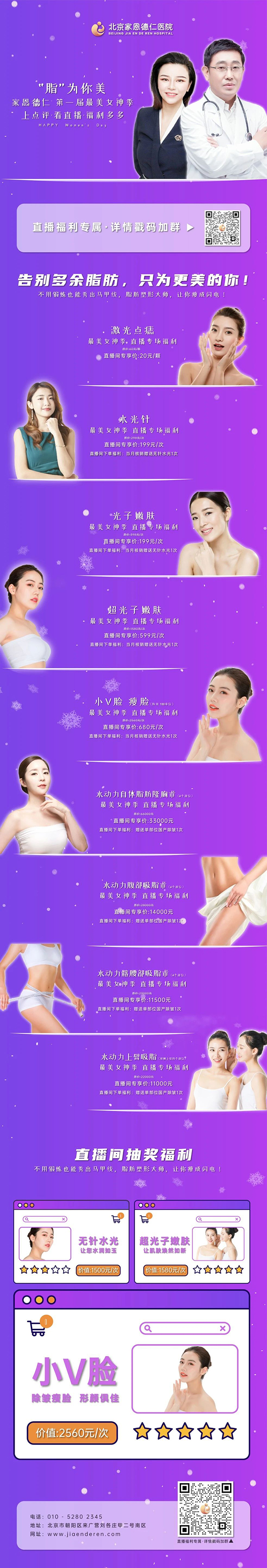 只要你进入直播间观看直播,脂肪塑形项目,全部5折起即可购买。不用节食瘦肚子、拉练瘦胳膊、跑步瘦大腿,只要5折就能瘦出马甲线、纤细的胳膊、筷子腿。除了这些福利,家恩德仁还为亲爱的你,准备了一大波水光针、瘦脸针、除皱等变美项目。